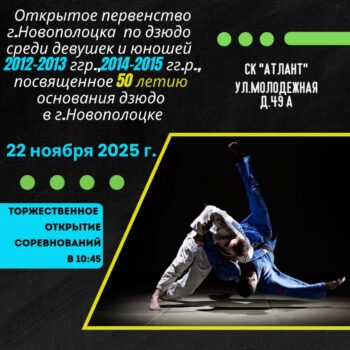 Соревнования среди юношей и девушек 2012-2013 гг.р.,2014-2015 гг.р., посвящённое 50-летию основания дзюдо в городе Новополоцке. 22 ноября 2025 г. в 10:45 — торжественное открытие. Место проведения: СК «Атлант», ул. Mолодежная, д. 49 А. Приглашаем вас!